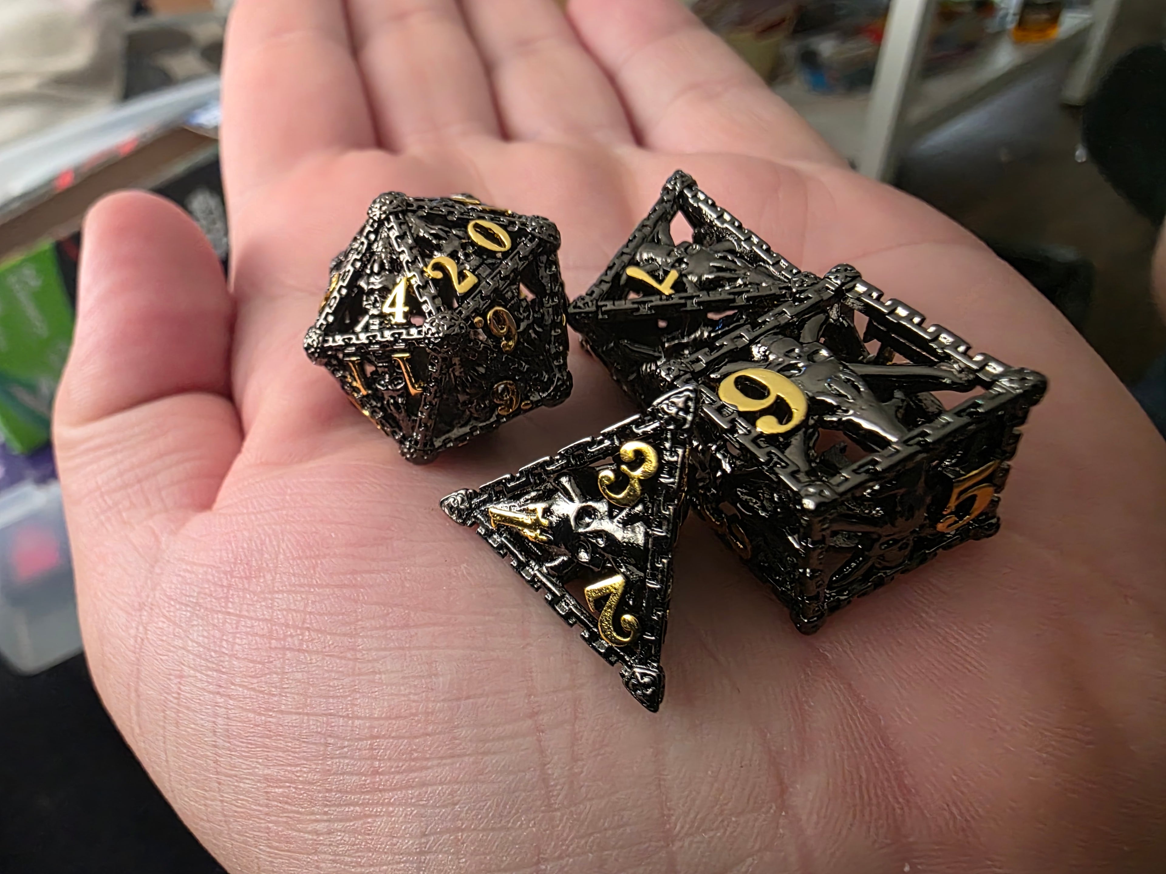 Pearlspire dice shimmer with a soft pearlescent glow, each set catching the...