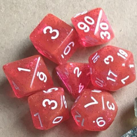 The Aurorite Series is where color meets shimmer. Each translucent set bursts with bright tones and sparkling flecks that shift and dance as the dice move. From crystal clear to deep jewel hues, these dice glow with the energy of a captured aurora. Bold, luminous, and full of life, Aurorite brings brilliance to every roll — no matter which color you choose.