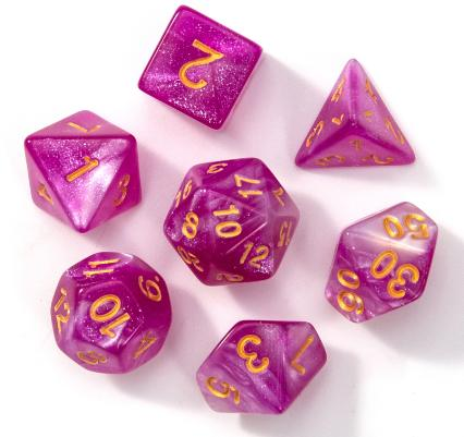 The Celestial Burst Series shimmer like the night sky caught in motion — two hues swirling together in semi-translucent brilliance, with a dusting of glitter that twinkles like distant stars. Eye-catching without being gaudy, these dice bring a touch of the heavens to your table. Perfect for players who want their rolls to shine with just a hint of cosmic flair.