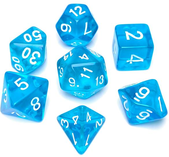 The Ethereal Series are like bottled starlight — clear, simple, and elegant. Their translucent design gives them a touch of otherworldly charm without being too flashy, making them perfect for adventurers who value subtlety over spectacle. Light on the coin purse yet lively on the table, these dice are a fine choice for heroes just beginning their journey, or veterans looking for a trusty spare set.