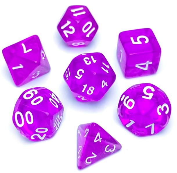The Ethereal Series are like bottled starlight — clear, simple, and elegant. Their translucent design gives them a touch of otherworldly charm without being too flashy, making them perfect for adventurers who value subtlety over spectacle. Light on the coin purse yet lively on the table, these dice are a fine choice for heroes just beginning their journey, or veterans looking for a trusty spare set.
