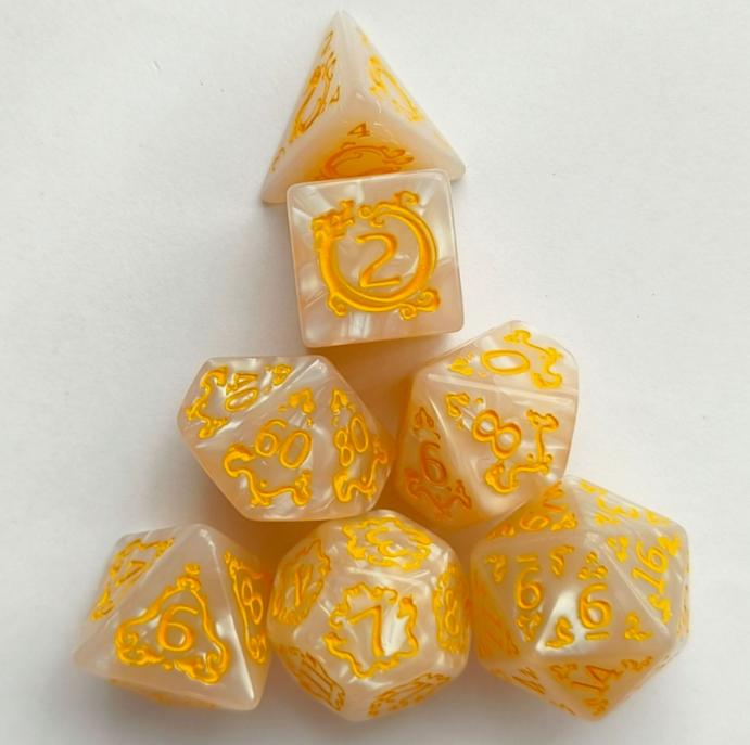 These dice bring a touch of classic fantasy flair without losing their playful side — simple, striking, and ready for any adventurer’s hoard. Whether you’re hunting treasure, slaying monsters, or just hoping the dice gods are on your side, Pearl Dragon dice are built to look good and roll true.