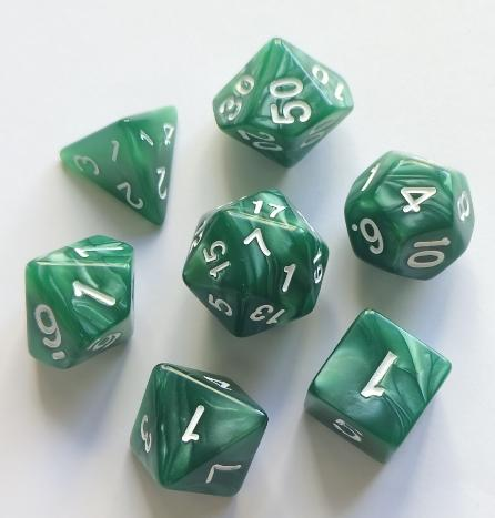 Pearlspire dice shimmer with a soft pearlescent glow, each set catching the light in its own way. The simple hues feel classic yet full of personality, like treasures polished smooth over time. They’re not flashy, but they stand tall with a quiet elegance—reliable companions for any table, whether you’re rolling for glory or just hoping the dice will finally be on your side.