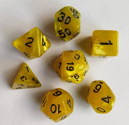 Pearlspire dice shimmer with a soft pearlescent glow, each set catching the light in its own way. The simple hues feel classic yet full of personality, like treasures polished smooth over time. They’re not flashy, but they stand tall with a quiet elegance—reliable companions for any table, whether you’re rolling for glory or just hoping the dice will finally be on your side.