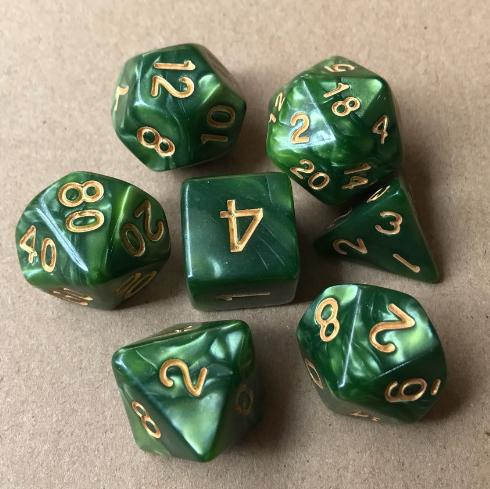 Pearlspire dice shimmer with a soft pearlescent glow, each set catching the light in its own way. The simple hues feel classic yet full of personality, like treasures polished smooth over time. They’re not flashy, but they stand tall with a quiet elegance—reliable companions for any table, whether you’re rolling for glory or just hoping the dice will finally be on your side.