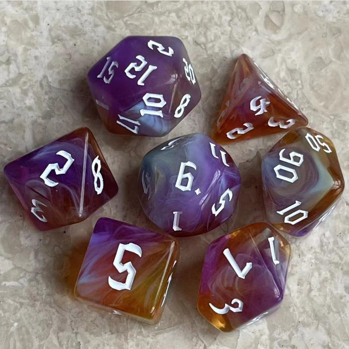 The Sigilic Conflux line takes the vivid four-tone palette of Prismatic Conflux and gives it an arcane upgrade with our alternate font — elegant, mysterious, and unmistakably magical. These dice look like something pulled from an old warlocks satchel, ready to seal a pact, break a spell, or simply decide who’s buying the next round.